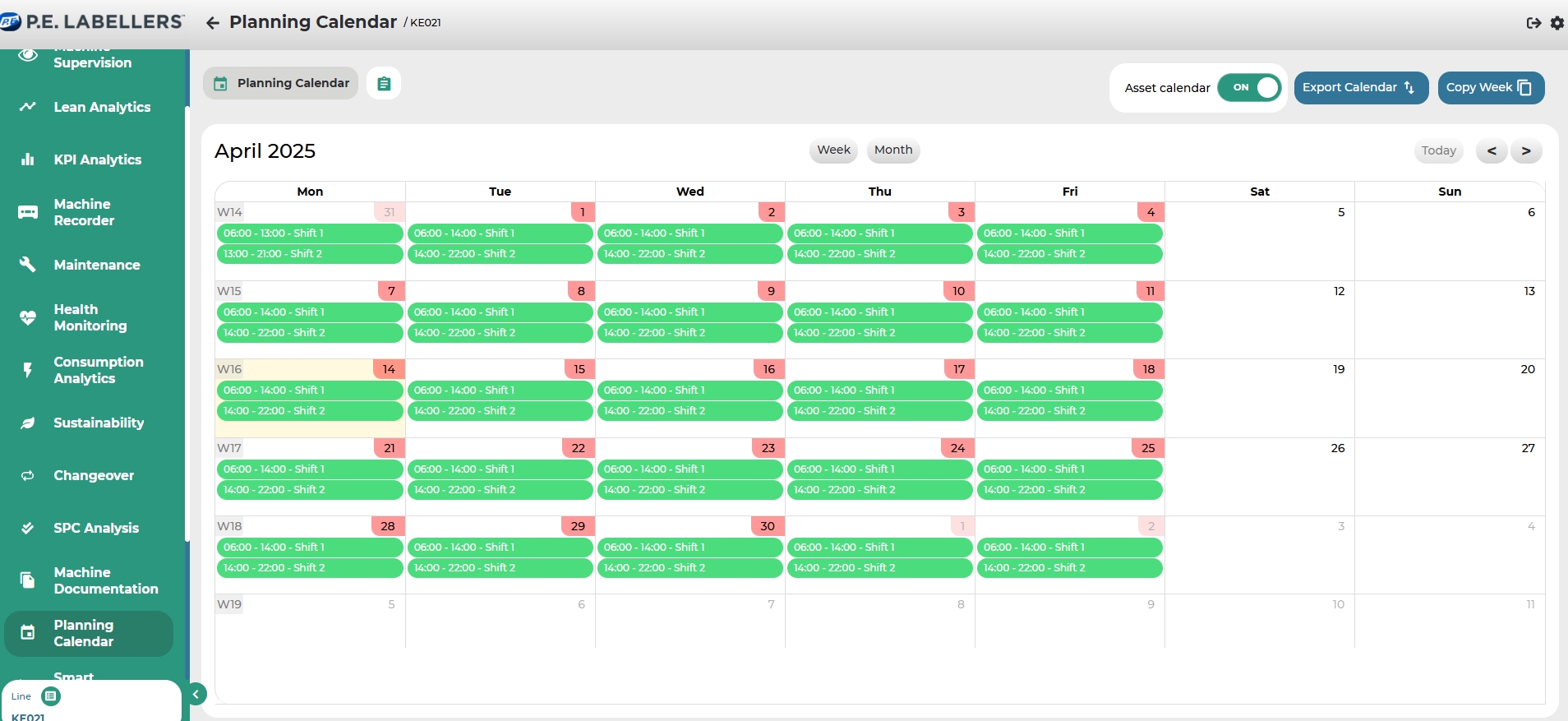 This module allows the entry of work shifts and scheduled events which, if not marked as “normal”, may affect productivity. In this way, events such as holidays, meetings, or maintenance activities are excluded from the availability calculation.