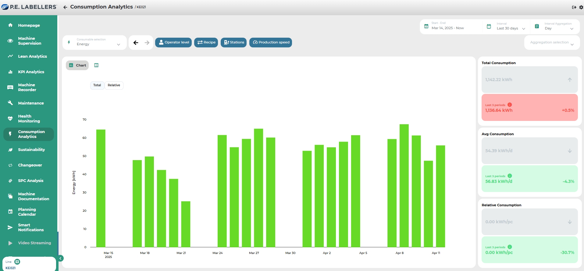 Module dedicated to analyzing machine consumption, both in terms of utilities (energy, air, gas, etc.) and raw materials (plastic, wheat, rubber, etc.).