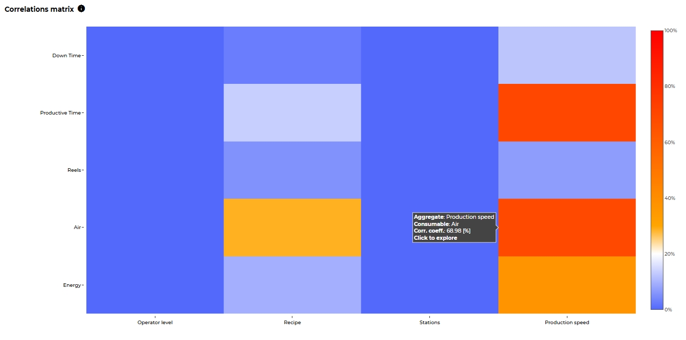 By observing the heatmap, one can immediately notice that the production line used has a strong impact on the overall cost. In particular, it affects setup and downtime, as well as water and energy consumption.