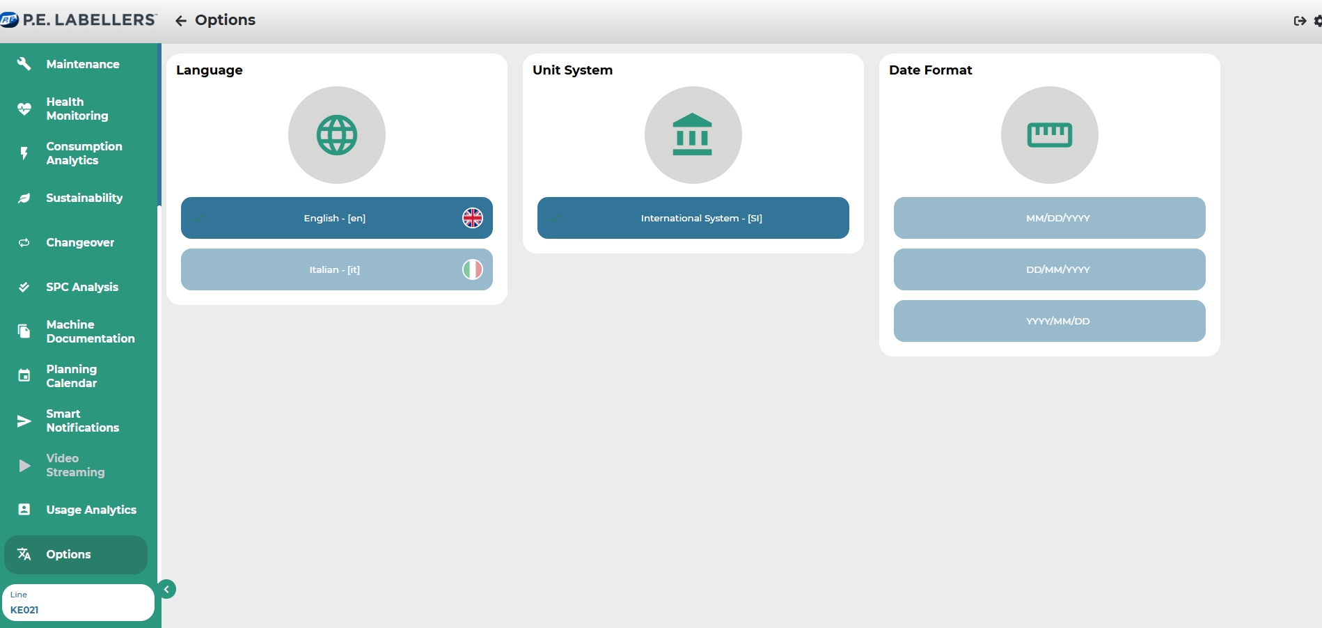 Measurement unit format: option to choose between the International System or the Imperial System;