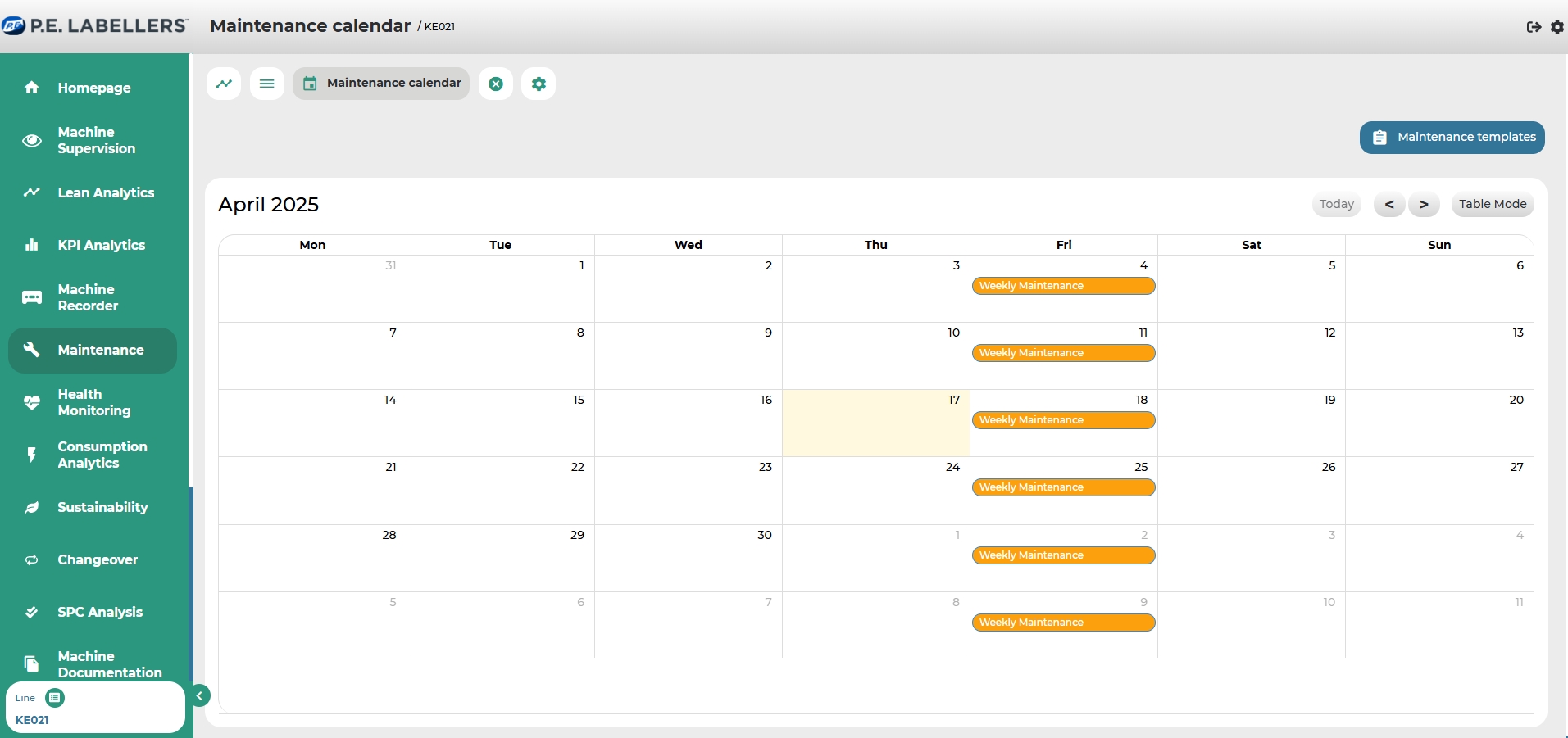 Additionally, it is possible to create a new maintenance template by clicking on: