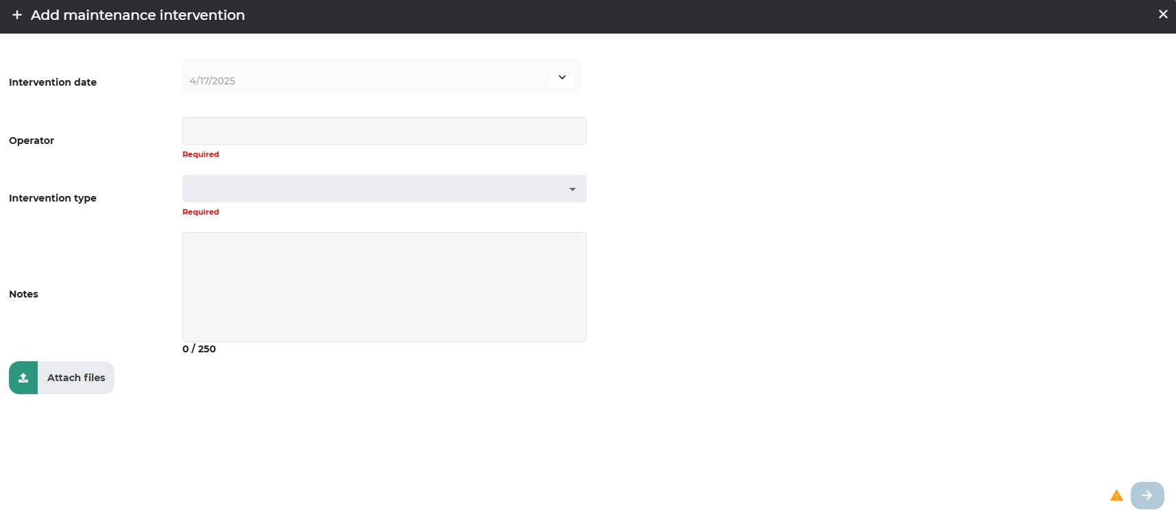 It is also possible to manually add a maintenance intervention by clicking on: