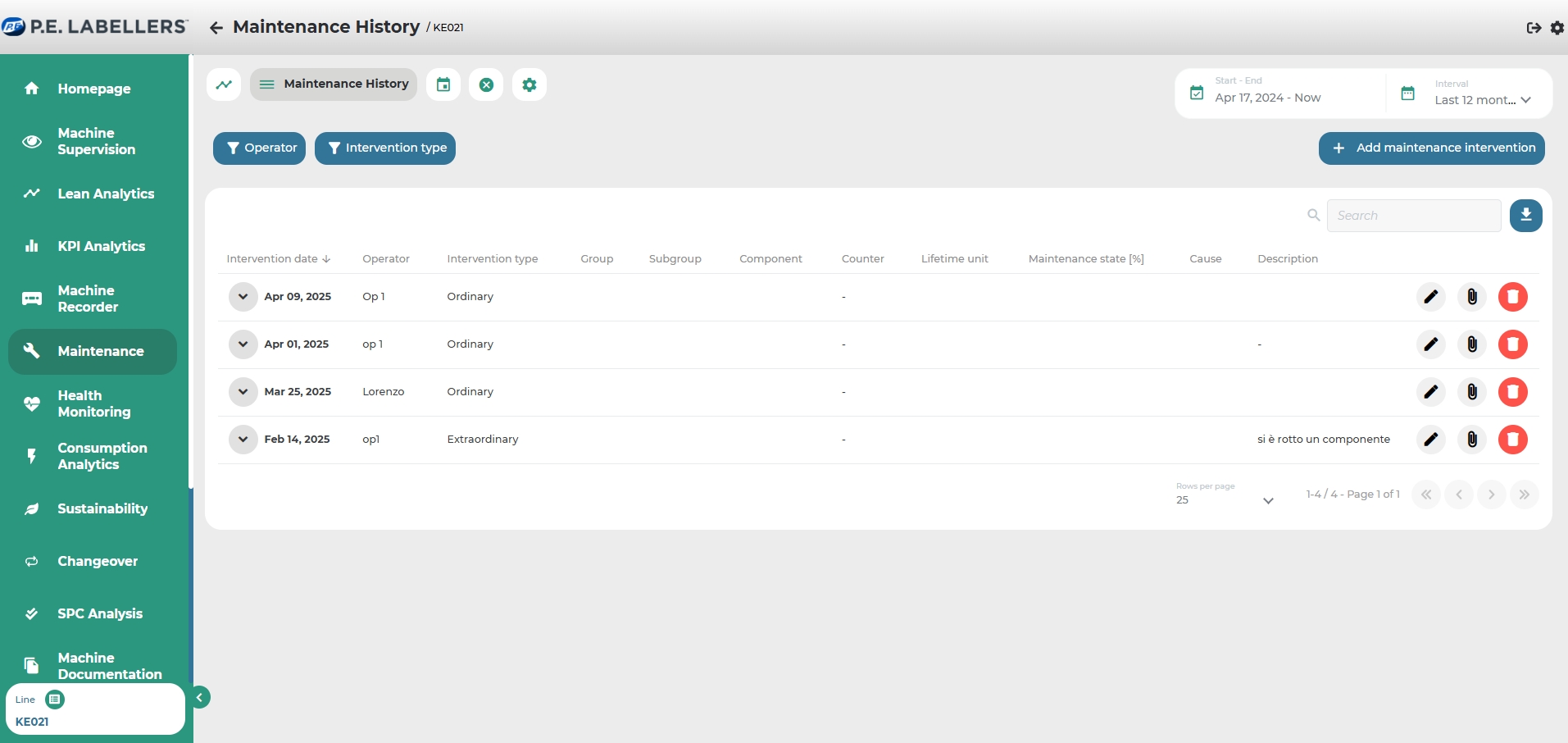 In this section, all maintenance interventions can be viewed in list format.