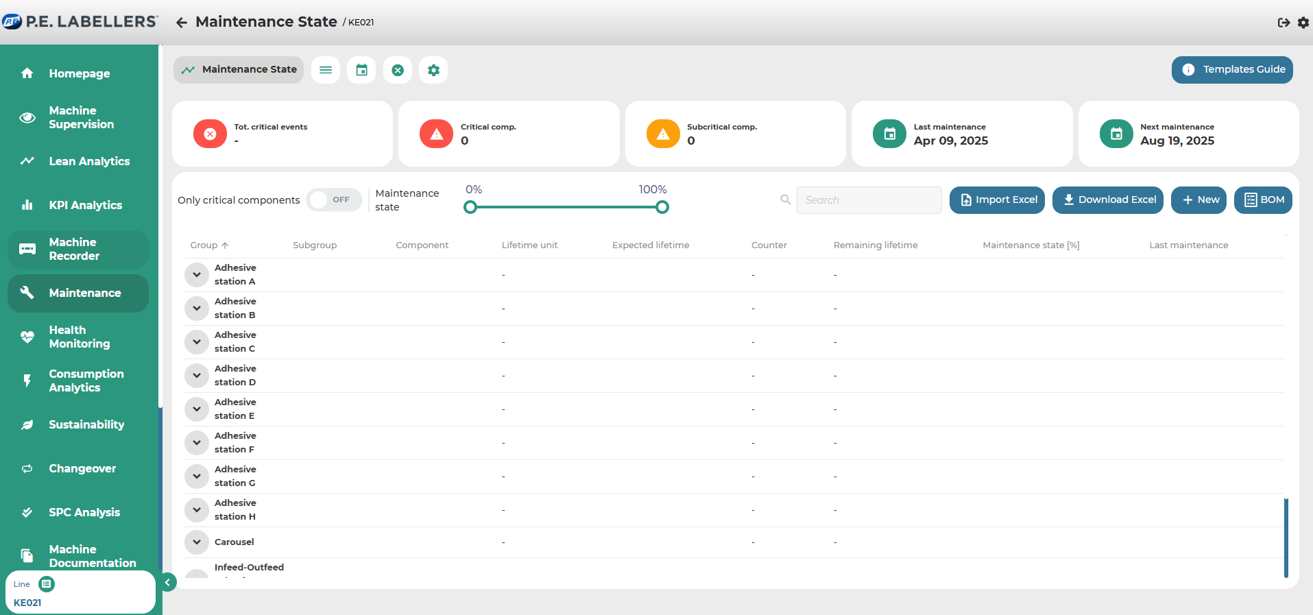 The basic bill of materials can be generated either in a customized manner by manually setting the time interval for the next maintenance intervention, or automatically.
