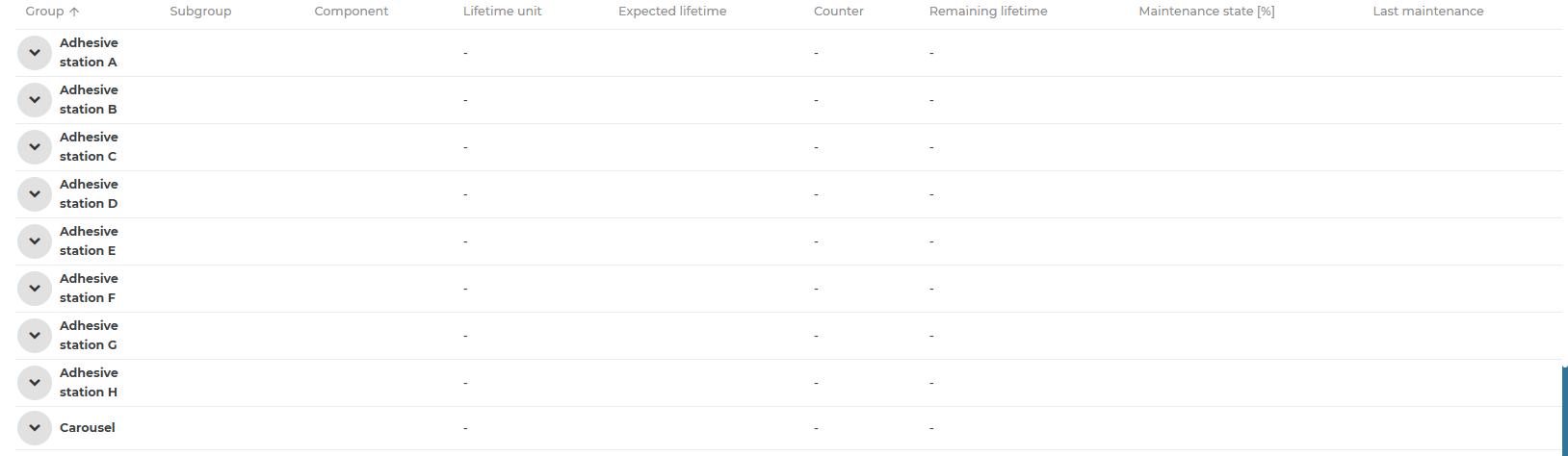 , will display only the components with a maintenance status percentage below the tolerance threshold.Selecting "Maintance state"