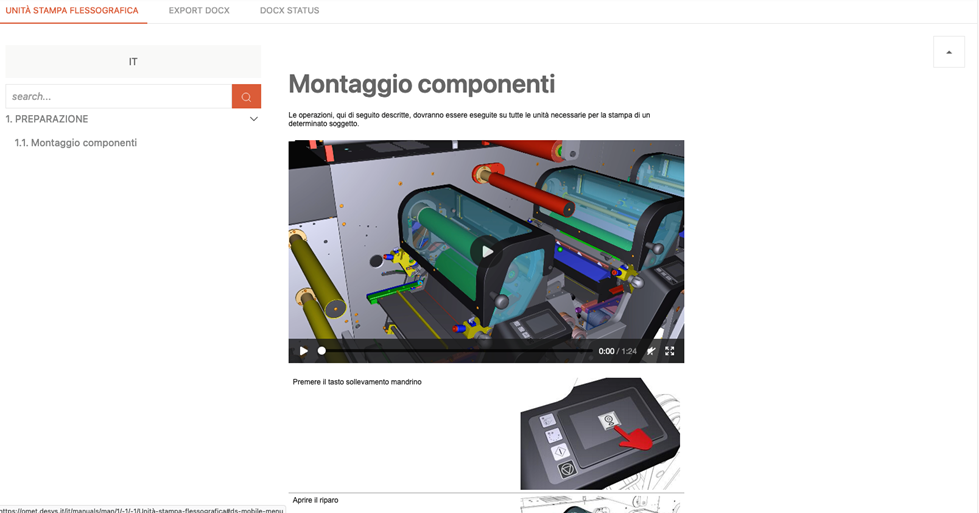 The Visual Documentation module enables the creation of web-based, multimedia user and maintenance manuals. Content is built in a modular way, ensuring high scalability and ease of management.